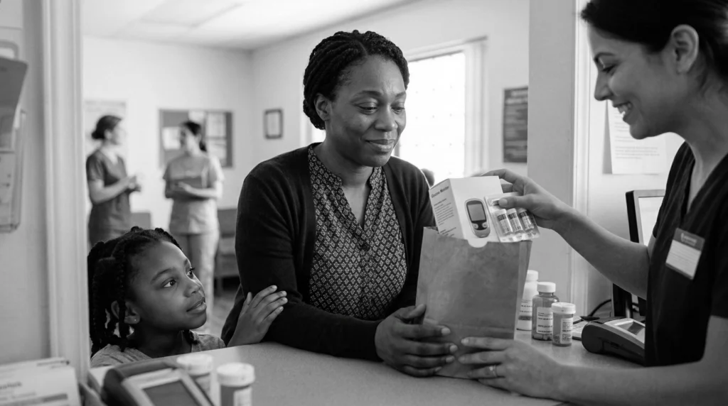 A mom, who is a part-time worker with no insurance, needs help paying for insulin and glucose monitoring supplies. She’s among the roughly 12% of working-age adults (18-64) who have no health care coverage. Right now, a federally qualified health center (FQHC) uses 340B discounts to provide insulin at a fraction of the retail cost (sometimes $10-20 instead of over $300). This allows her to afford consistent treatment and avoids emergency hospital visits.